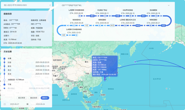 历史及当前挂靠港轨迹